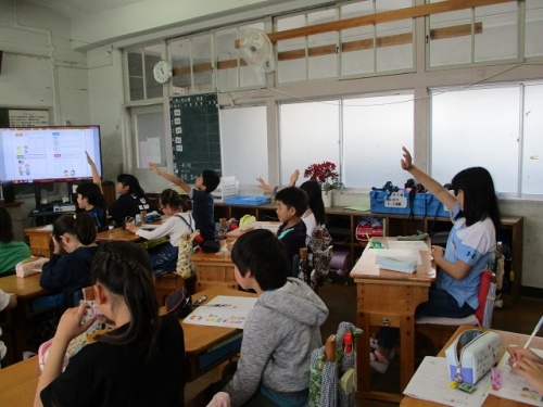 ホーム > ニュース 外国語活動 4年生で外国語活動の時間がありました。英語指導助手の先生に来ていただいています。簡単な英語の会話を聞き取ったり、話したりしながら、英語に慣れ、親しんでいく子どもたちです。 シェアする Twitter でシェア はてなブックマークに保存 LINE でシェア Facebook でシェア Pocket に保存 Feedly で購読 関連投稿 ニュース 伝統文化体験 ニュース 修了式と離任式 ニュース 雨の読書室 ニュース 避難訓練 ニュース 薬物乱用防止教室 ニュース 四季をイメージして・・(5年生) 前の投稿 しっかり学習しています 次の投稿 読書室にようこそ