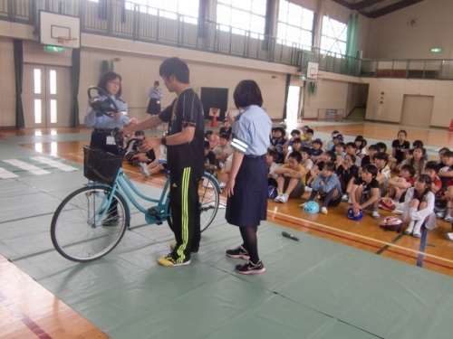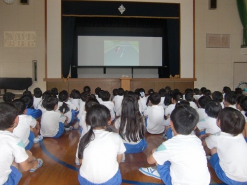 松阪市の交通安全指導員「とまとーず」さんに来ていただき、交通安全教室を開きました。2年生は、「歩行での交通安全指導」をしていただきました。交差点等で止まって安全を確かめることの大切さを教えていただきました。また、5年生は、「自転車の乗り方の指導」をしていただきました。自転車の乗り方やブレーキのかけ方、ヘルメットのかぶり方等について教えていただきました。しっかり守って事故に合わないようにしていきたいものです。