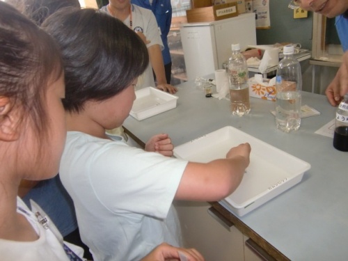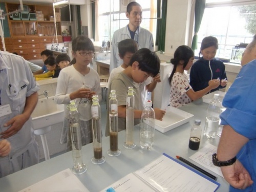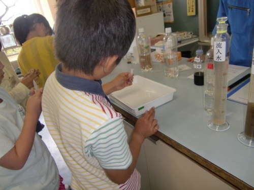 松阪浄化センターによる下水道教室が4年生対象に開かれました。下水道は、豊かな自然や快適な暮らしを守るために大切な施設です。浄化センターの職員さんから、下水道の役割や水をきれいにする仕組みなどについての説明を聞いたり、水の汚れやティッシュペーパーの溶け方など色々な実験をさせていただいたりしました。下水道で活躍する微生物も顕微鏡で見せていただきました。一人ひとりのちょっとした工夫や心がけが、環境を守ることにつながることを子どもたちも実感したことと思います。