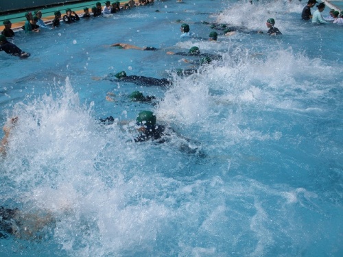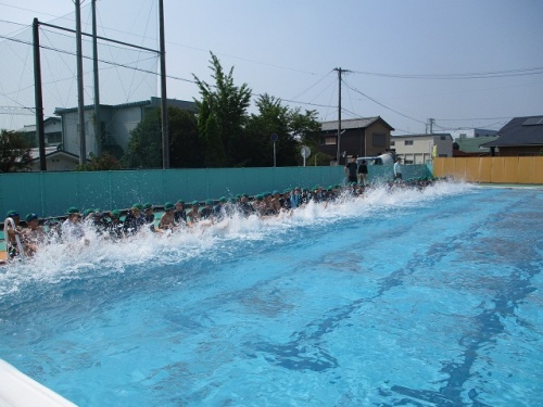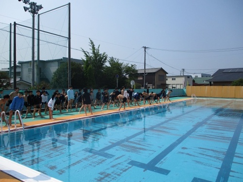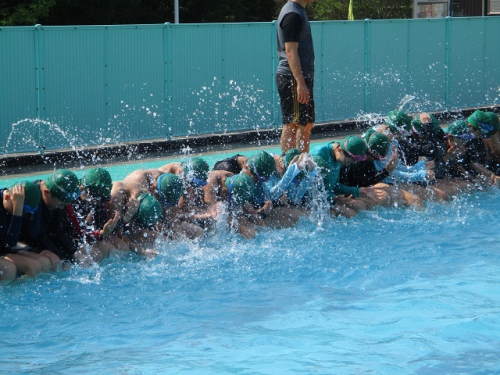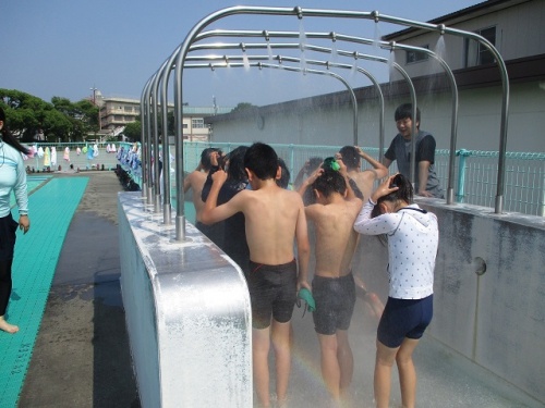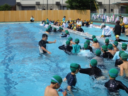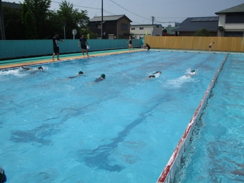 5年生が、ようやく今日プールに入ることができました。1限目、子どもたちは、プールに集まると早速準備体操をし、シャワーを浴びました。その後担任から話を聞き、軽く泳いだ後、まずは、それぞれの泳力を確かめるために泳いでみました。その後、泳力別の3コースに分かれて練習をしました。2時限の授業時間の中で、子どもたちはめいっぱい泳ぎ切りました。