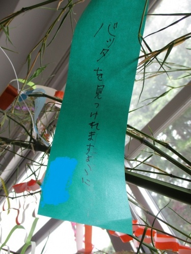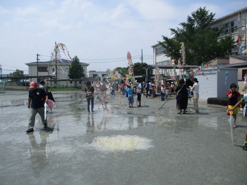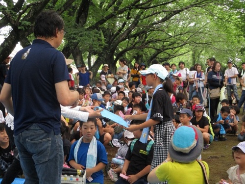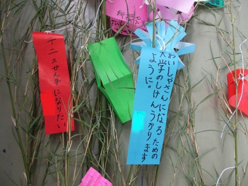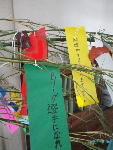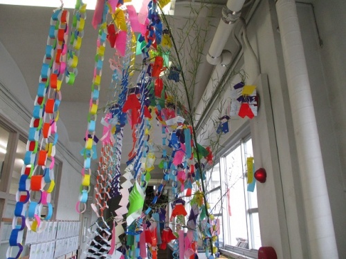 土曜日に、殿町中学校区青少年育成会主催の七夕まつりが行われました。学校集合時刻には、かなりの雨で実施が危ぶまれるほどでしたが、なんとか出発のころには雨もやみ、無事に阪内川会場に到着できました。市長さんや教育長さんを迎えての開会式の後、歌を歌ったり、くじ引きをしたりして楽しみました。くじに当たり賞品をもらった子の多くが、幸小学校でした。当たった子たちは大喜びでした。当たらなかった子は「来年は絶対当てるぞ。」と早くも来年の七夕まつりを楽しみにしているようでした。PTA健全育成部の皆さまはじめ保護者の皆さま、ご参加ありがとうございました。子どもたちの願い事が叶うように、笹飾りは7月7日まで阪内川河川敷に飾られています。