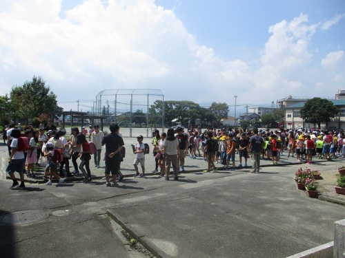 長い夏休みが終わり、子どもたちが元気に登校してきました。子どもたちの声が学校中に響き渡っています。学校は、防災トイレの設置工事だけまだ終わっていませんが、その他の工事は完了しました。少しだけリニューアルした学校での授業再開です。また、今日から教育実習生が来ました。