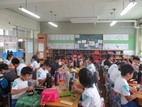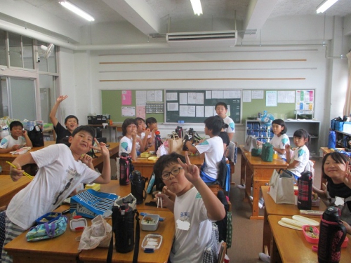 今日は給食はありませんでしたので、お弁当持参での登校でした。どの学年の子どもたちもとても嬉しそうでした。保護者の皆さまには大変お世話をおかけしましたが、子どもたちにとっては滅多にない楽しいお弁当タイムとなりました。保護者の皆さまありがとうございました。