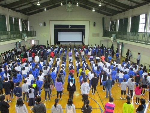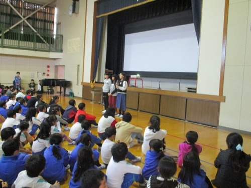 5限目に全校集会がありました。はじめに児童会より、県のいじめ防止強化月間にちなみ、11・12月目標を「格好悪い いじめはみじめ その心」にしよう、という呼びかけがありました。その後、美化委員会より「後期のなかよし班掃除で大切にしたいこと」について劇や映像を使って発表がありました。集会後、後期のなかよし班の顔あわせをしました。子どもたちが主体となって、自分たちの学校生活や仲間のことを考え取り組んでくれています。
