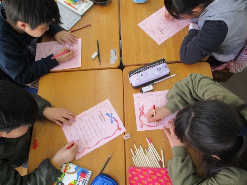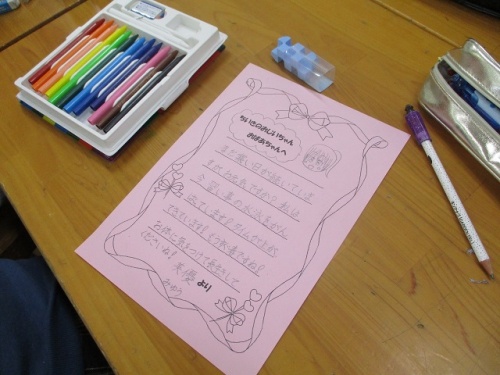 幸地区まちづくり協議会絆部会と幸福祉会が、幸地区のお年寄り宅へお弁当を配付するという取組をされています。その時に、本校の子どもたちからの手紙も届けていただいています。子どもたちは、自分のがんばっていることや学校の出来事などを添えて、あれこれと読んでいただく方のことを考えながら丁寧に書いていました。喜んでいただけるといいなと思います。