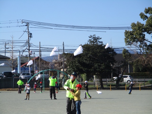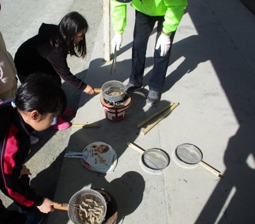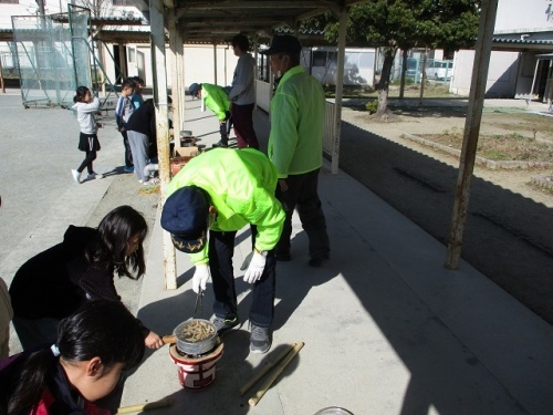 今日は、桜町老人会の皆さんに来ていただき、1年生が凧あげ、3年生があられ煎りを体験させていただきました。凧あげは、ほどよい風があり、澄み切った青空にたくさんの凧が気持ちよくあがりました。どの子も夢中になってやっていました。あられ煎り体験は、簡単に火がつかない様子を見て昔の人の苦労に思いをはせたり、七輪で煎ったあられのおいしさに感動したりする子どもたちの姿が見られました。最近では、子どもたちが凧あげをしたり、あられ煎りをしたりすることが少なくなってきました。ぜひ機会があればお家でもやってみてください。