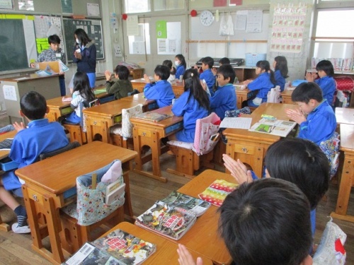 保健委員会の子どもたちは、委員会の時間に手洗いの実験をしました。その際に手の爪や親指の汚れが落ちにくいことに気づきました。清潔なハンカチの必要性にも気づき、各クラスに伝えに行きたいという思いを持ちました。先週から保健委員会の子どもたちが、各教室に手洗いの正しい仕方を伝えに行っています。今日は2年1組と2組でした。