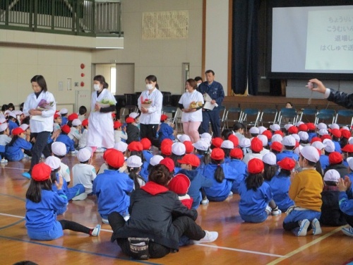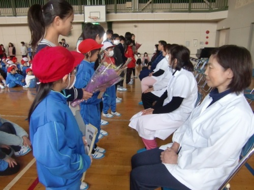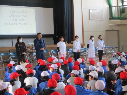 昨日行われた集会のもう一つは、給食調理員と校務員への感謝会です。給食調理員と校務員への感謝の気持ちを子どもたちがお手紙を書いて伝えてくれました。その後、給食委員会の発表もありました。給食についての説明やクイズをしてくれました。委員会の集会での発表はこれで最後になります。委員会の発表は、一人ひとりが全校の前で自己紹介をしたり、発表をしたりと、それぞれが活躍できる場となっています。どの子も事前に練習をし緊張しながら全校の前に立ちますが、終わった後の子どもたちは、実にいい表情をしています。今後もこういった取組を大事にしていきたいと思います。