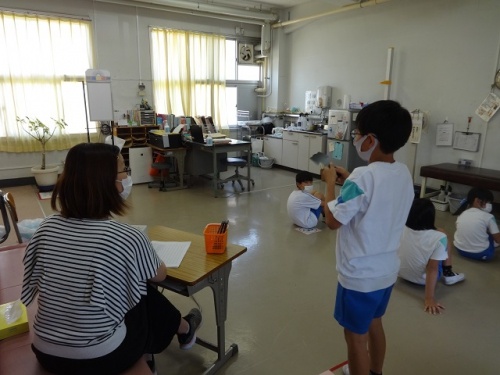 授業では、4年生の算数では少人数授業が始まりました。5年生の理科では植物の発芽と成長の学習をビデオで興味深く視聴している様子がありました。6年生では、国語の天地の文を音読して暗記するまでがんばっている風景がありました。