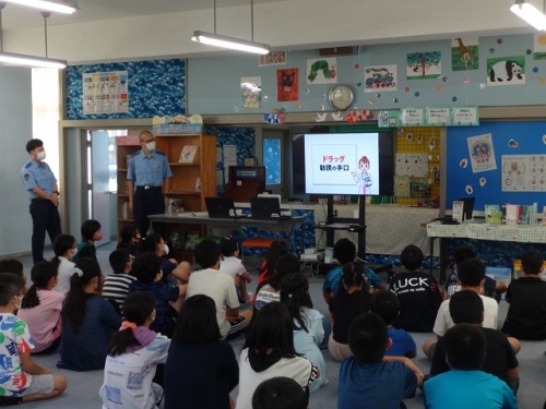 7月28日(火)に6年生が保健の授業の「病気の予防」の学習として、薬物乱用防止教室を実施しました。三重県警察署の警察官2人の方にお越しいただいて、薬物乱用における身体における有害性・危険性を説明していただいたり、ビデオ教材で深めていただいたりしました。違法薬物は一度でもしてはいけいこと、依存性が強いこと、知らないうちに誘われてしまうことの怖さ等を教えていただきました。また、違法薬物を誰かから誘われそうになったらはっきりと断ることの重要性を伝えていただきました。