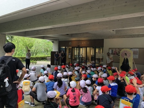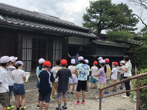 7月29日(水)に4年生が郷土の偉人でもある本居宣長さんの学習として、本居宣長記念館へ校外学習に行きました。最初に東館長さんのお話を聞きました。これまでに4年生の三分の一の児童が本居宣長記念館を訪れたことがあるようでした。