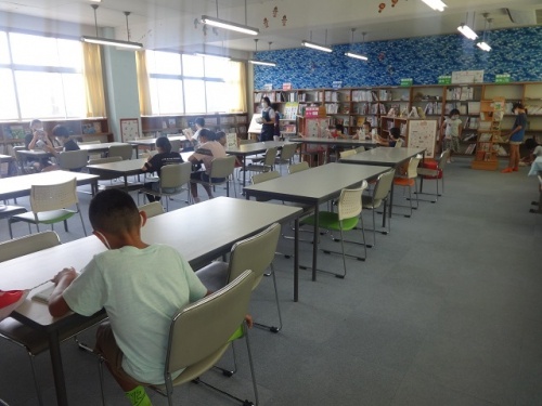 今日の昼休みに楽しそうな声がたくさん運動場から聞こえてきました。最近天気が不安定ですが、暑さは少しおさまっているので、たくさんの子どもたちが、外で元気にかけ回っていました。とても楽しそうでした。読書室では、読書に集中している子どもたちもいました。
