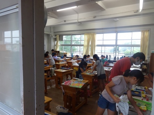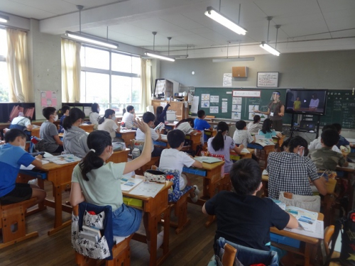 今日は雨天で暑さは少し和らいでいます。子どもたちも落ち着いて授業に取り組んでいます。