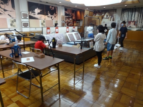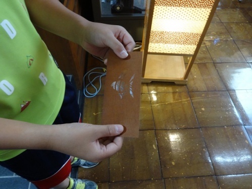 鈴鹿市伝統産業会館では、子どもたちは伊勢型紙を体験し、しおりのデザインを彫刻刀で彫りました。細かいところまで、ていねいに、きれいに彫れました。