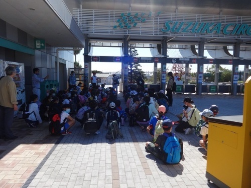 また、鈴鹿サーキットでは、お弁当を食べた後、行動班で鈴鹿サーキット内を回りました。乗り物によっては待ち時間が長く、多くの乗り物に乗るために相談している班もありました。みんな楽しそうに過ごしていました。