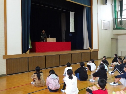 教育講演会は落語家の「切磋亭琢磨」さんをお迎えして、「落語を聞いて笑おう!話を聞いて考えよう!お隣の人のことを」と題してお話をしていただきました。古典落語の「寿限無」を楽しく聞かせてもらいました。また、切磋亭琢磨さんが教員時代に担任をした教え子のお話等をしていただきました。命の大切さや悲しいことも前向きに考えて楽しくプラス思考で生きていくことが大切なことを、ご自身の体験から教えていただきました。