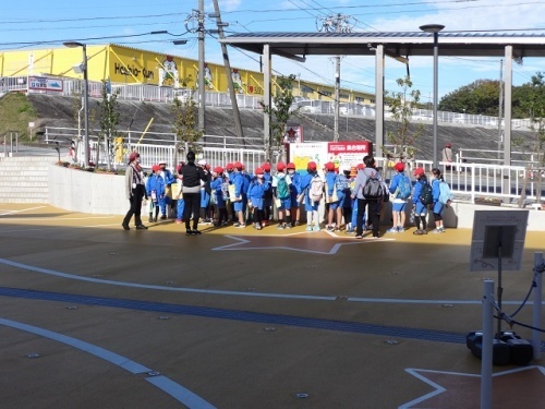 おやつタウンでは、ベビースターラーメンができるまでの製造工程を見学しました。現在はそのほとんどがオートメーション化されて製造されています。子どもたちは案内係さんの説明をしっかり聞いたり、メモをとったりと意欲的に学習をがんばっていました。三重交通やトライアルの見学もとてもよくがんばって学習できました。