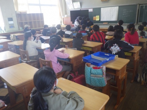 今日は、第1回目の町別子ども会。それぞれの町に分かれて会議をしました。どの教室に行ったらいいか分からない1年生のために、6年生が教室まで迎えにきてくれました。「さあ、こっちだよ。」と1年生に優しいまなざしを向けながら。今日は、団長さん、班長さん等の確認と集合場所、時間等について話し合われました。
