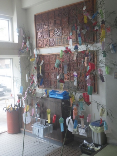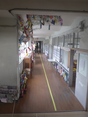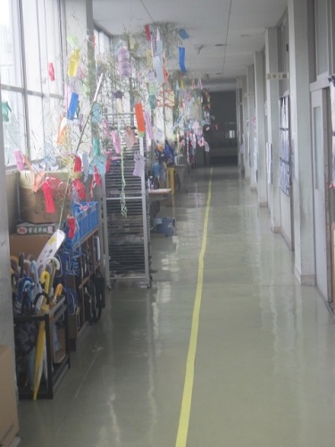 今、各教室前の廊下には笹飾りが並んでいます。