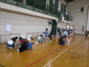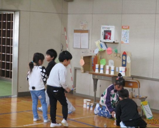 同じ日に学校の体育館では、2年生が1年生を招待してわくわくフェスティバルが行われました。